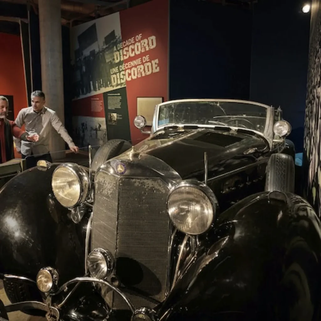 Among the massive vehicles in the LeBreton Gallery is a Hitler-era Mercedes-Benz 770K staff car, one of the most infamous artifacts in the collection.